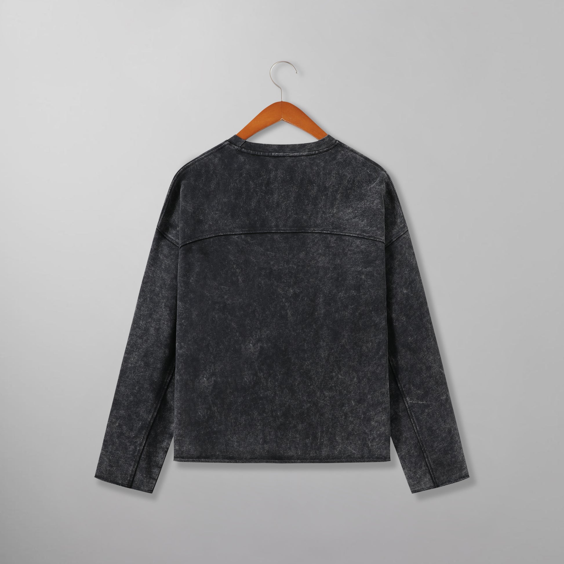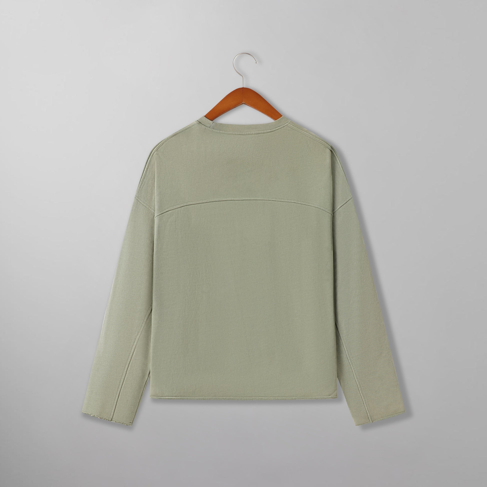 - Raw edges on hem, arm opening, and neck for a laid-back, effortless look
